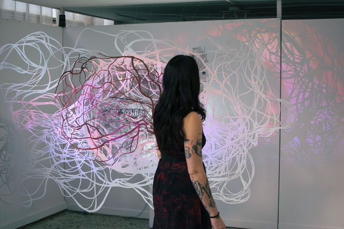 The artwork is a multi-layered depiction of the internal structure of an eye. Each layer is arranged at specific intervals to evoke a sense of time, space and depth. In addition, in one of the layers is being projected an eye surgery, serving as a raw metaphor of the harsh realities of today's world and our desensitization to death and suffering, while it embodies a critique of contemporary society. It suggests that despite having our eyes open, we often fail to truly see or feel, trapped in an illusory world where selective vision numbs our awareness.